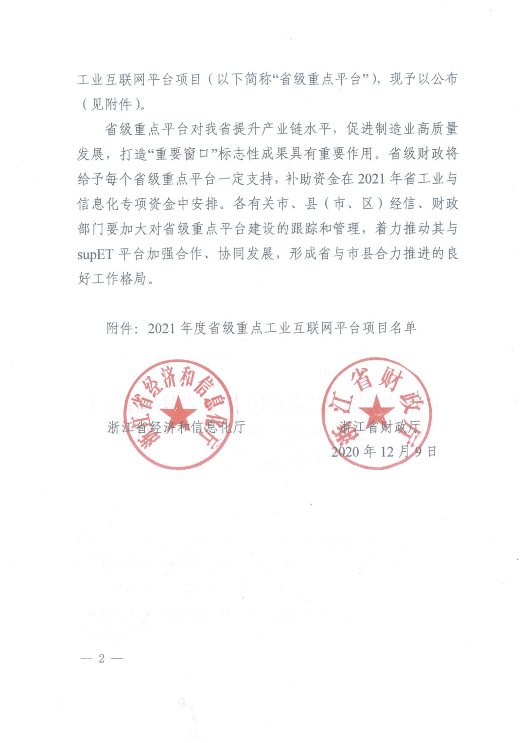 浙江省级重点工业互联网平台