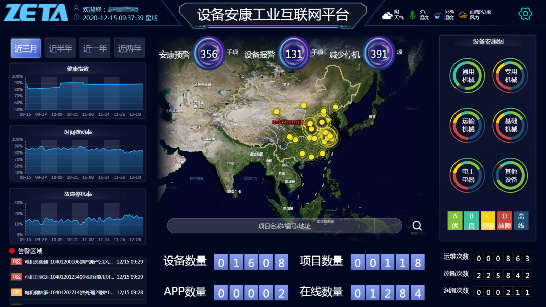 225项健康参数监测,设备运行状态实时掌握,规避设备安全隐患。